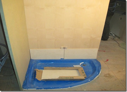 The bulkheads are in place for the bathroom and bedroom, and the shower tray has been fitted.