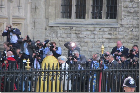 Today we got up (reasonably) early and went straight to Westminster Abbey to be there for the Queen’s arrival for the service of thanksgiving for the last 60 years. Remarkably, out of the thousands of people there we bumped into Debbie and James from nb ‘Lois Jane’ and we joined them for the next 3 hours of waiting and watching on top of a wall.