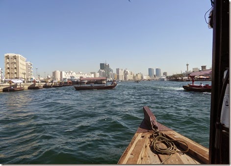 Today we headed for The Creek, which divides Deira from Dubai and, on the way, found breakfast in a super little (only two tables!) eating house where we were warmly welcomed by the local artisans and workforce. We enjoyed savoury and sweet pastries and very sweet coffee – the chap whose table we were invited to share proudly explaining the ingredients of each morsel.